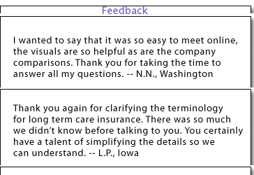Regulations for long term care insurance do not allow policies to be sold online but you can get a quote by email. We are able to answer any questions you may have about your quote or the insurance plans by email or phone.